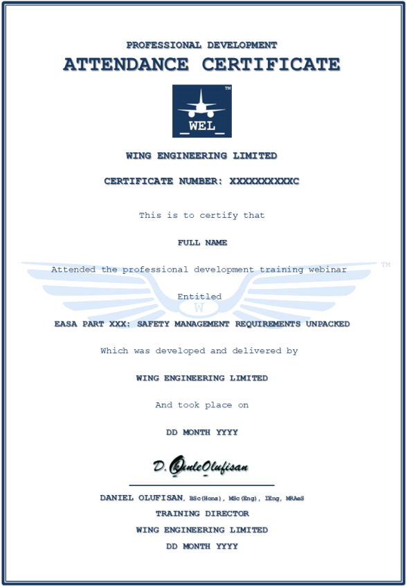This professional development training webinar will review the safety management IRs, AMCs and GMs of the updated EASA Part 145 regulatory framework, using illustrative examples and guidelines.